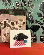 relief print and collage each with their own gingham fabric coat and sequin collar.